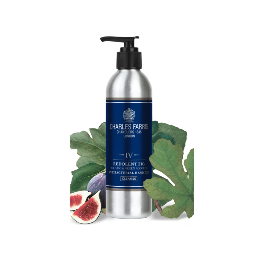 The Charles Farris 200ml antibacterial hand gel cleans and refreshes, with no need to rinse. The alcohol formula is made with added moisturisers to soothe your skin, while green fig leaves mixed with a hint of fruity cassis and soft florals leaves hands delicately scented.