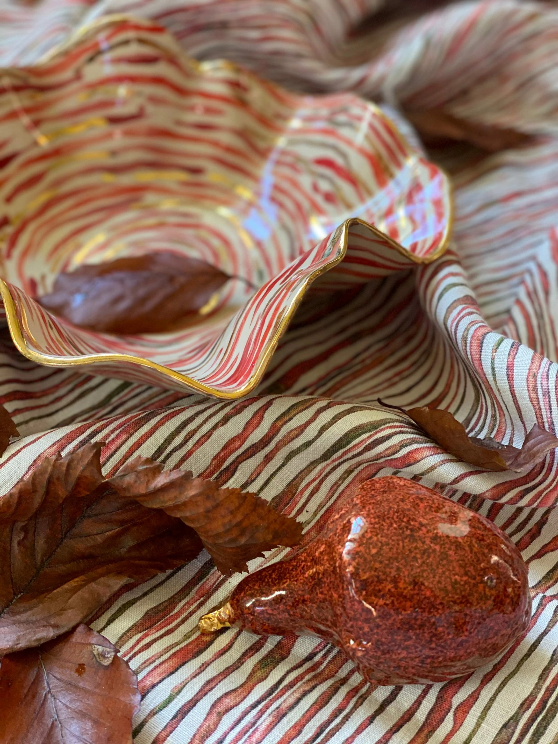 Deborah has made us a full collection of timeless ceramics to decorate the table and complimenting our Bertioli by Thyme table linens.Â