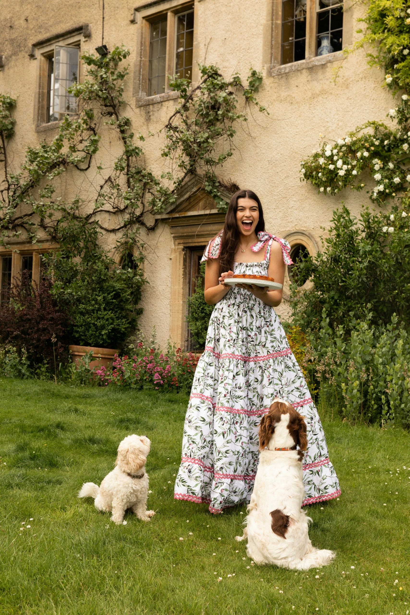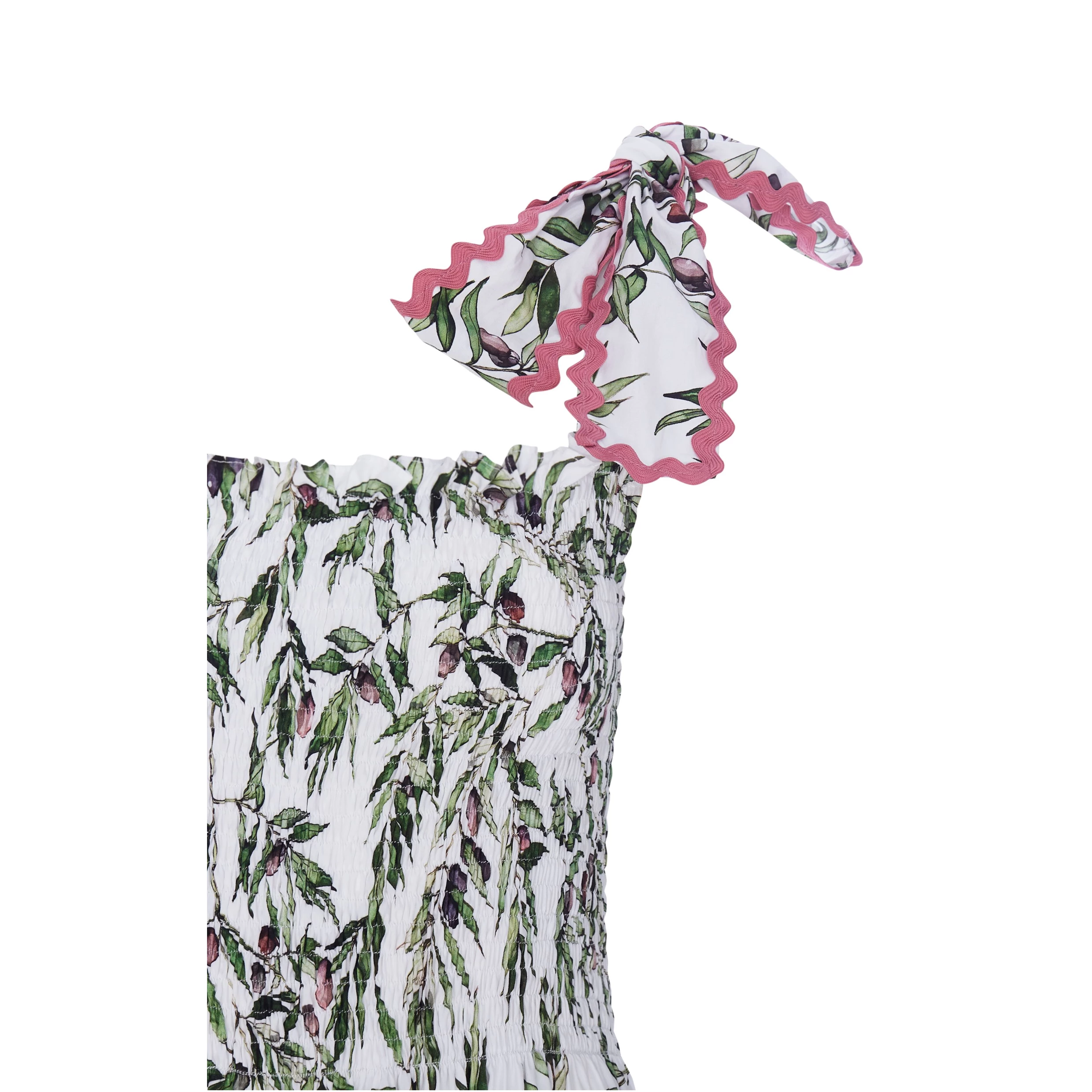 We have collaborated with Greek designer Flora Sardalos for this capsule collection. Caryn painted a beautiful collection of botanicals inspired by Greece. Flora combined the printed cotton fabric with her signature voluminous dresses and trim details to create this stunning collection of dresses.