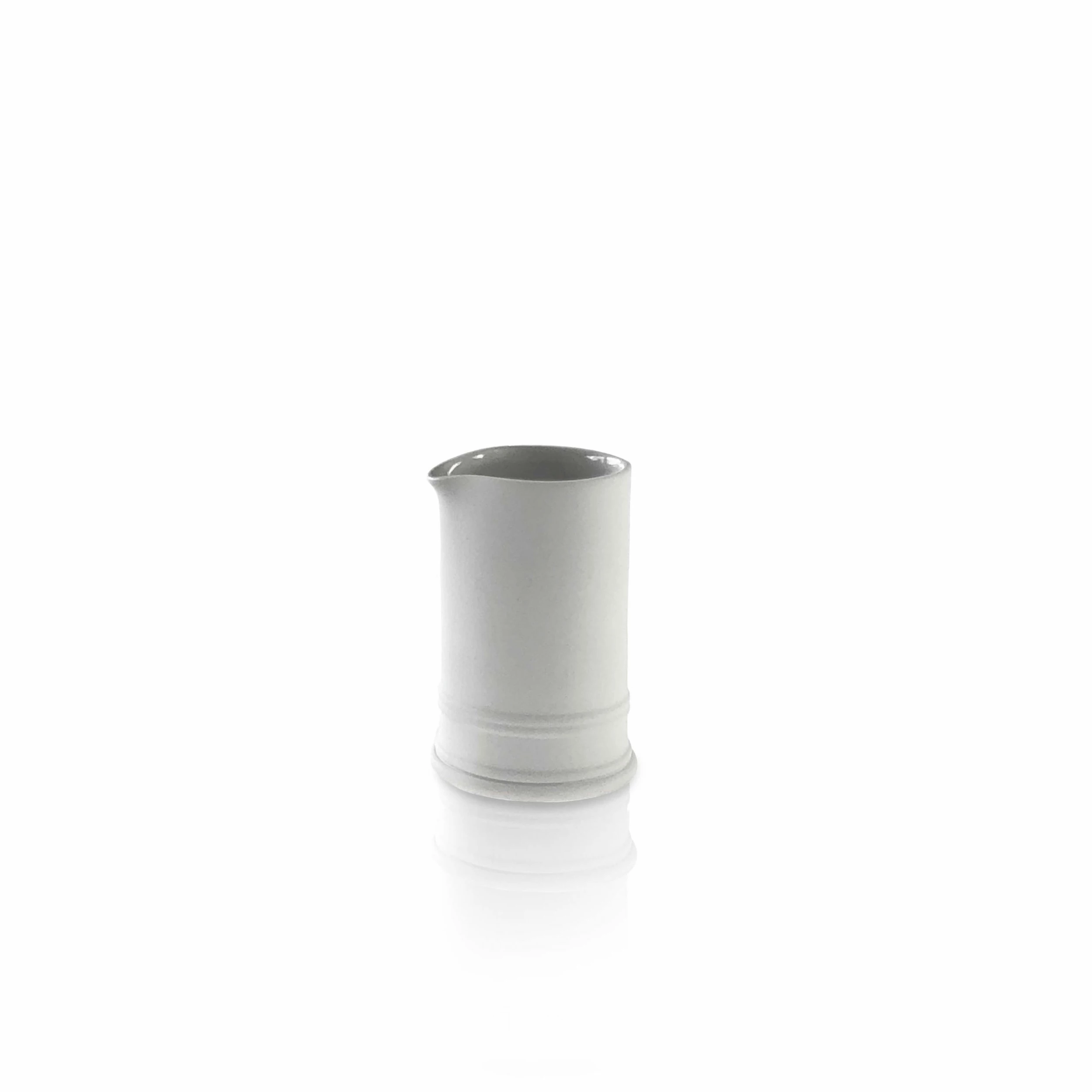 With their glossy interiors and unglazed exterior, these classical creamers are tactile and refined. They are available in two sizes and sit neatly with the Classical Handleless Jugs.