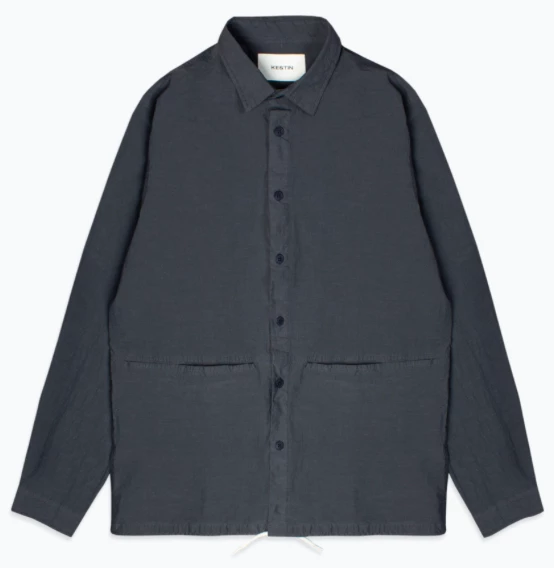 The Armadale Overshirt is a casual style cut for the first time from a garment dyed technical cotton/nylon cloth. This style features a large kangaroo pocket and is finished with an ecru cotton drawcord hem. Durable and perfect for layering. Kestin is known for sourcing technical fabrics with unique finishes. This garment-dyed Italian cotton/nylon has a paper touch quality with an ultra-tight weaving construction, giving it a slight crinkled texture. Its technical handle and the garment dyeing treatment results in a three dimensional appearance.