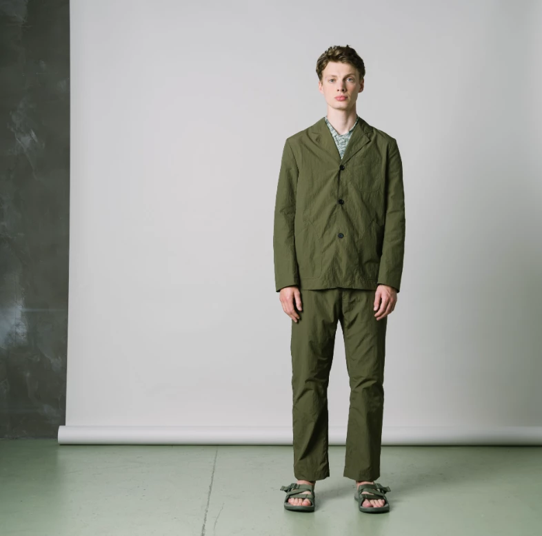 A casual workwear-inspired blazer with three angled patch pockets. The Stac is cut from a lightweight, water repellent Italian cloth. This cloth is one of our star performers and used time and time again due to its durability and premium feel. The fabric is lightweight, with a technical handle and unique texture, it’s matt and slightly textured. The fact that it is both water repellent and breathable makes it an ideal option to keep on hand to be used across different seasons.
