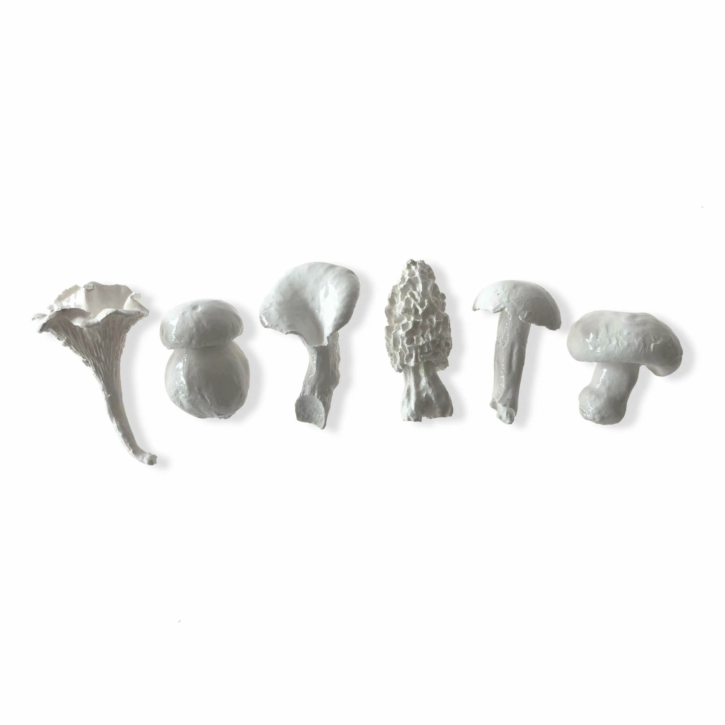 La Galine Set Of 6 White Mini Mushrooms Ceramics