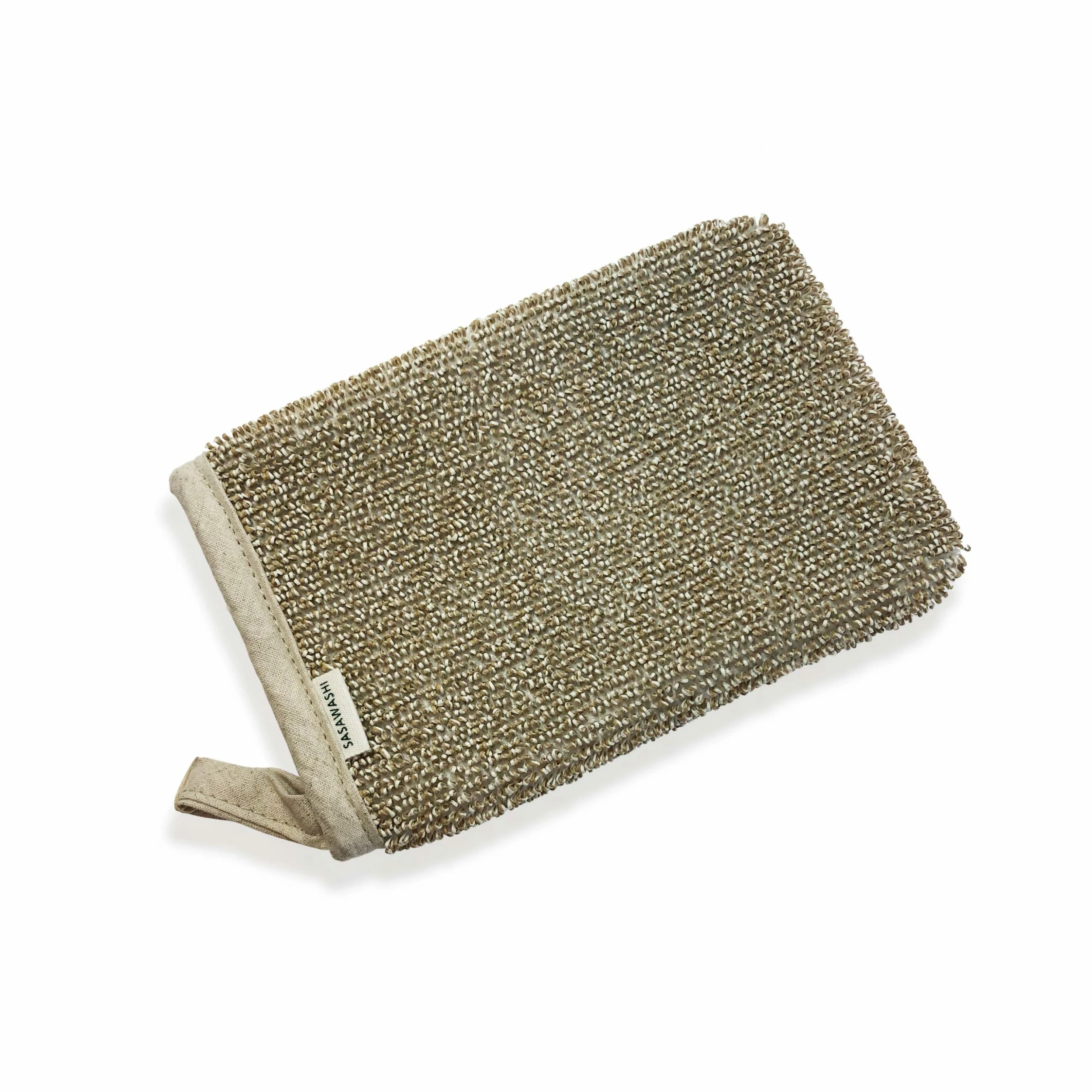 Sasawashi deep exfoliating body scrub mitten with hard texture.Â