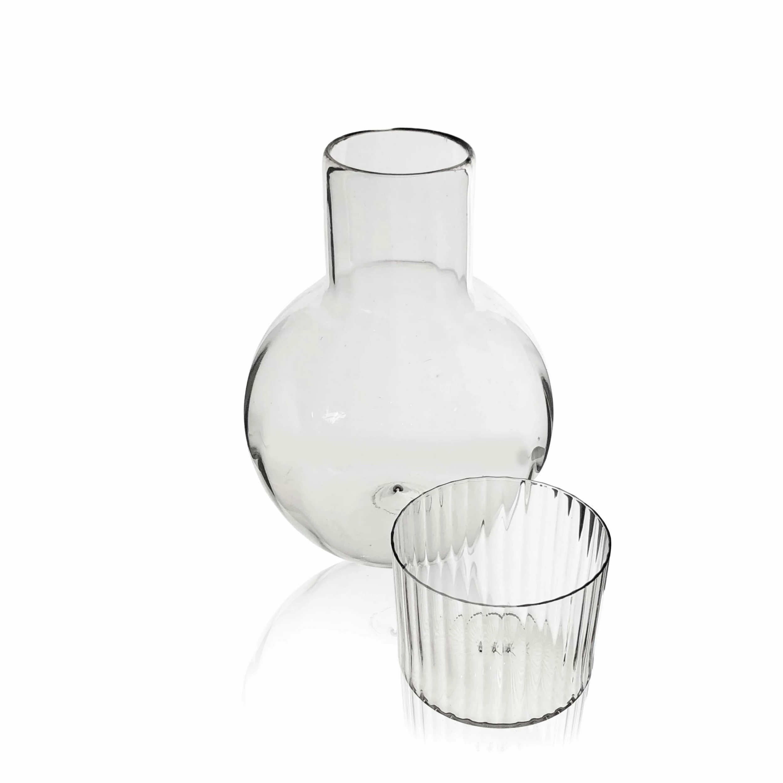 This simple carafe looks so elegant against our Bertioli by Thyme table linens. It cones with a tumbler glass which sits on top, perfect for your bedside table.
